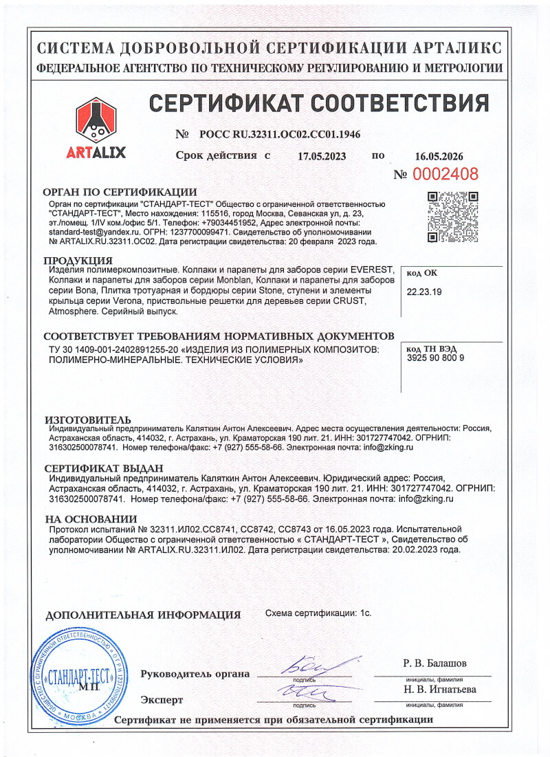 Сертификаты соответствия ZKING для Салехарда